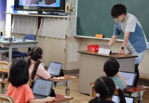 また、1年生は、国語科「よんでたしかめよう」の学習のはじめに、画像を見て、海の中にかくれている生き物を探す活動に取り組んでいました。