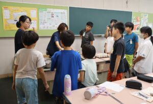 「だし」「うま味」「だしの取り方や味わい方」について栄養士の先生から伺うとともに、だしの素クイズや、だし汁の試飲を体験しながら、「だし」についての理解を深めました。