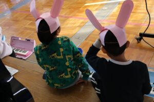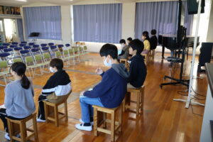 運動会に引き続き、「心を一つに元気よく 笑顔で最後までがんばろう!」のテーマのもと、日を分けて、「校内」と「公開」の2度の発表会を開催します。校内発表会間際となり、発表会場の音楽室では、本番さながらの通し練習が行われていました。