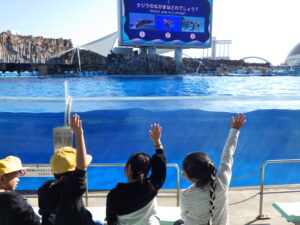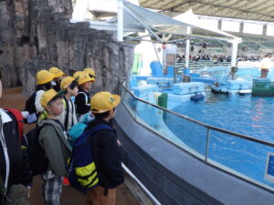 2年生は名古屋港水族館へ町のマイクロバスで出かけました。館内の見学と合わせて、イルカショーを最前列で観覧したり、潮風広場で遊んだりして名古屋港での一日を満喫しました。