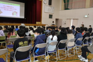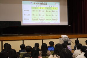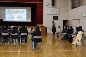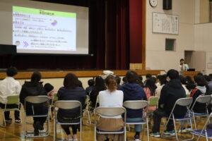 2回目となる今回は、あいち健康の森健康科学総合センターによる出前講座「睡眠とメディア機器との関係 ~よい睡眠とメディア機器との付き合い方!~」に全校児童が参加する形で開催しました。