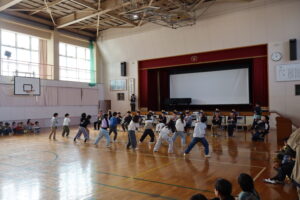 まずは1年生からの手作りプレゼントに始まり、ダンス、6年生クイズ、メッセージと表彰状渡しなど、4年生までが感謝の気持ちを込めた出し物を披露しました。