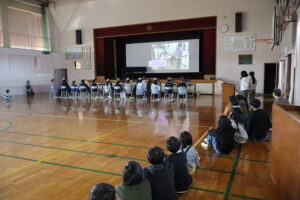 次に、6年生の6年間の名場面を、5年生が制作したスライドショーを見ながら皆で振り返りました。