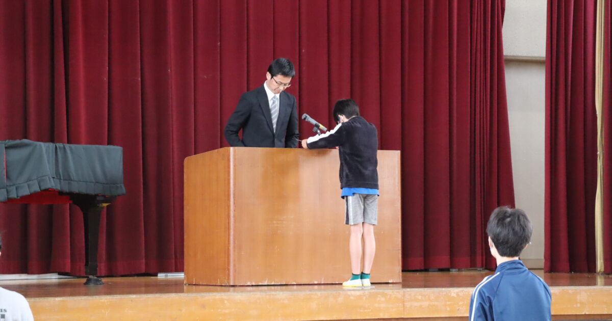 学級委員が認証されました。 学級委員に選ばれた人たちは1年間がんばってください。また、クラスの人たちも助けてあげてください。 みんなでいいクラスにしていきましょう。 校長先生から、朝のあいさつについてお話がありました。 […]