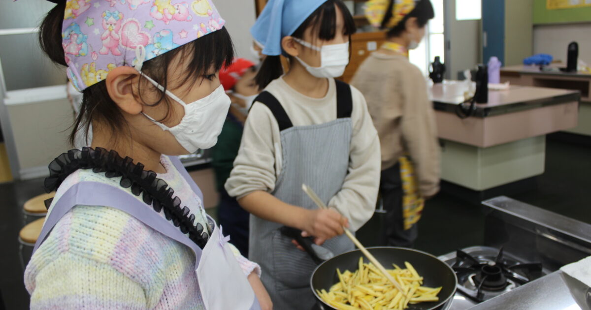 11月13日(木) 収穫したサツマイモを使って、2年生が芋けんぴを作りました。 下ごしらえされたサツマイモをフライパンで炒り、甘いたれをからめます。こぼさないように、落とさないように慎重に調理をしました。少しずつ取り分 […]